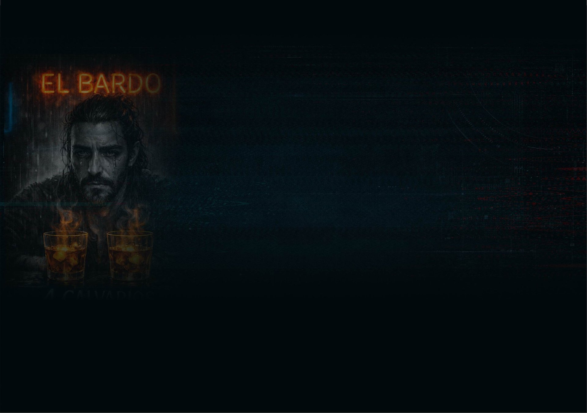 4 Calvarios, su tema más exitoso, recorre las calles de Milethos entre humo, alcohol y recuerdos imposibles de enterrar. Dos calvarios reposan en vasos de cristal —refugio momentáneo y redención líquida— y dos habitan en su mirada, marcados por el peso del desamor y la pérdida. Entre ironía, cinismo y vulnerabilidad, el Bardo convierte la derrota cotidiana en versos que oscilan entre el sarcasmo y la confesión.